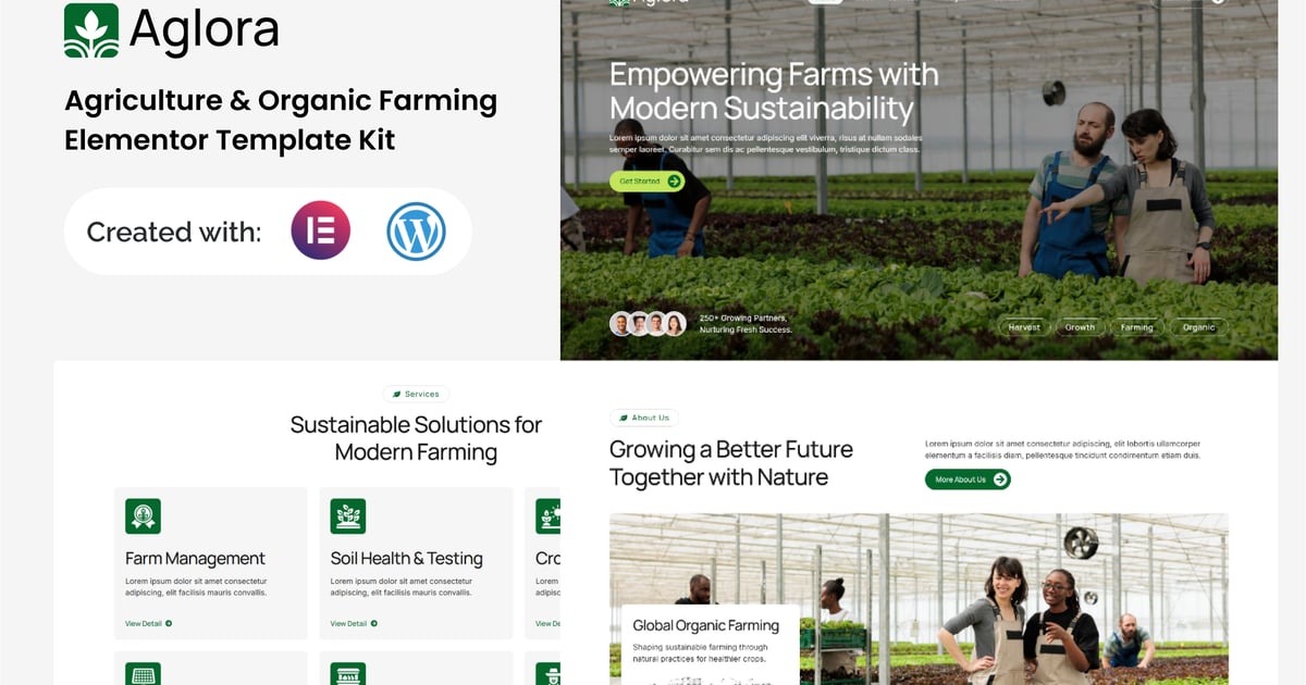 Aglora – Agriculture & Organic Farming Elementor Template Kit