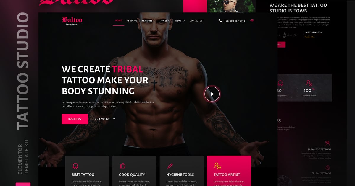 Baltoo – Tattoo Studio and Artist Elementor Template Kit