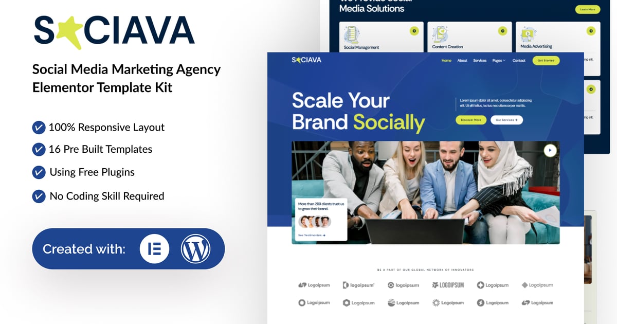 Sociava – Social Media Marketing Agency Elementor Template Kit