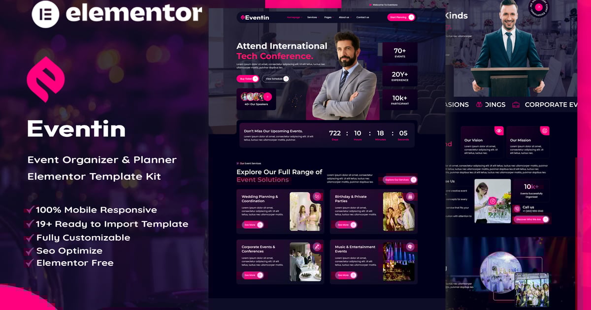 Eventin – Event Organizer & Planner Elementor Template Kit