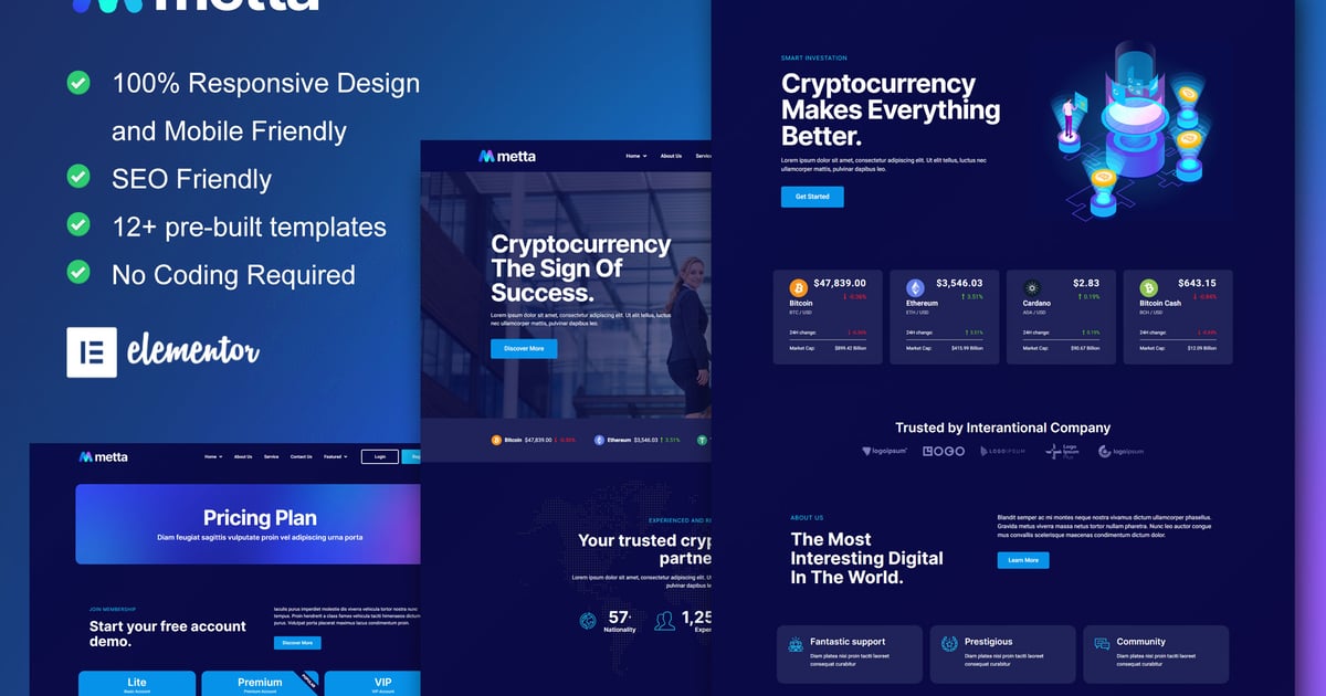Metta – Cryptocurrency Blockchain & Bitcoin Elementor Template Kit