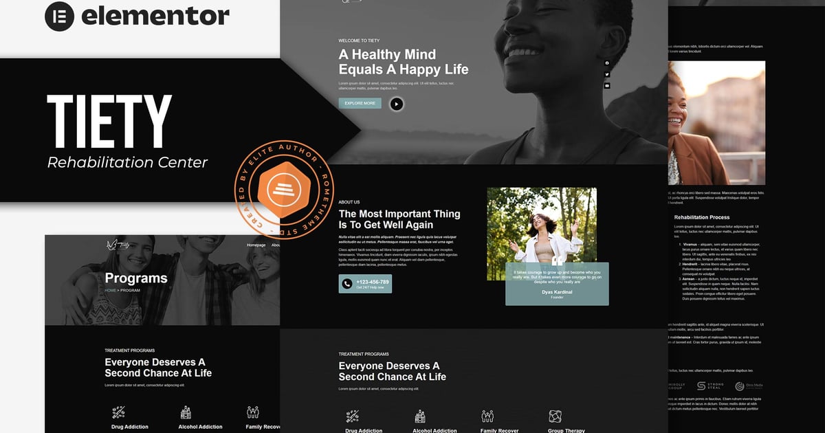 Tiety – Addiction Recovery and Rehabilitation Center Elementor Template Kit