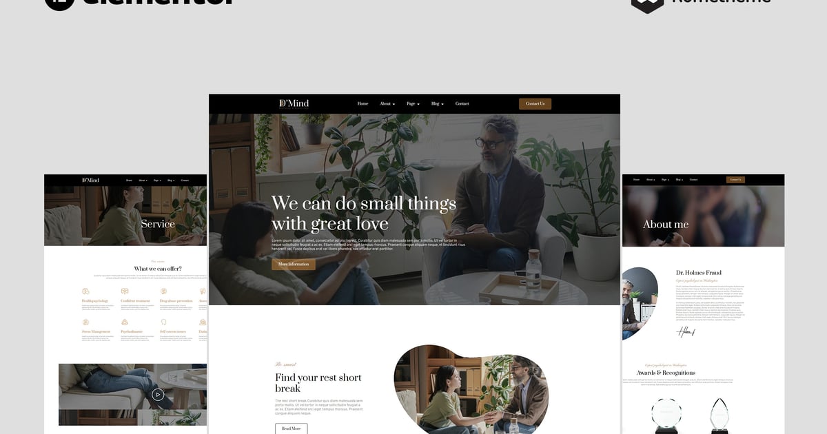 D’Mind – Psychology & Counseling Elementor Pro Full Site Template Kit