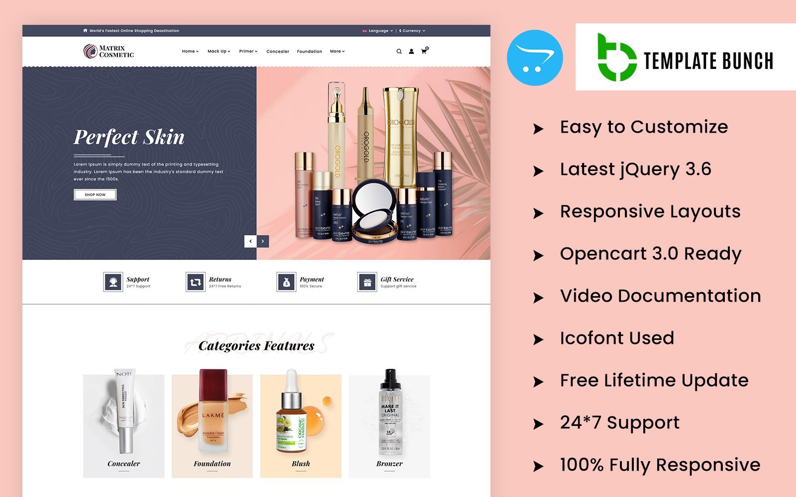 Matrix Cosmetic OpenCart Themes and Website Templates for eCommerce Website Design OpenCart Template