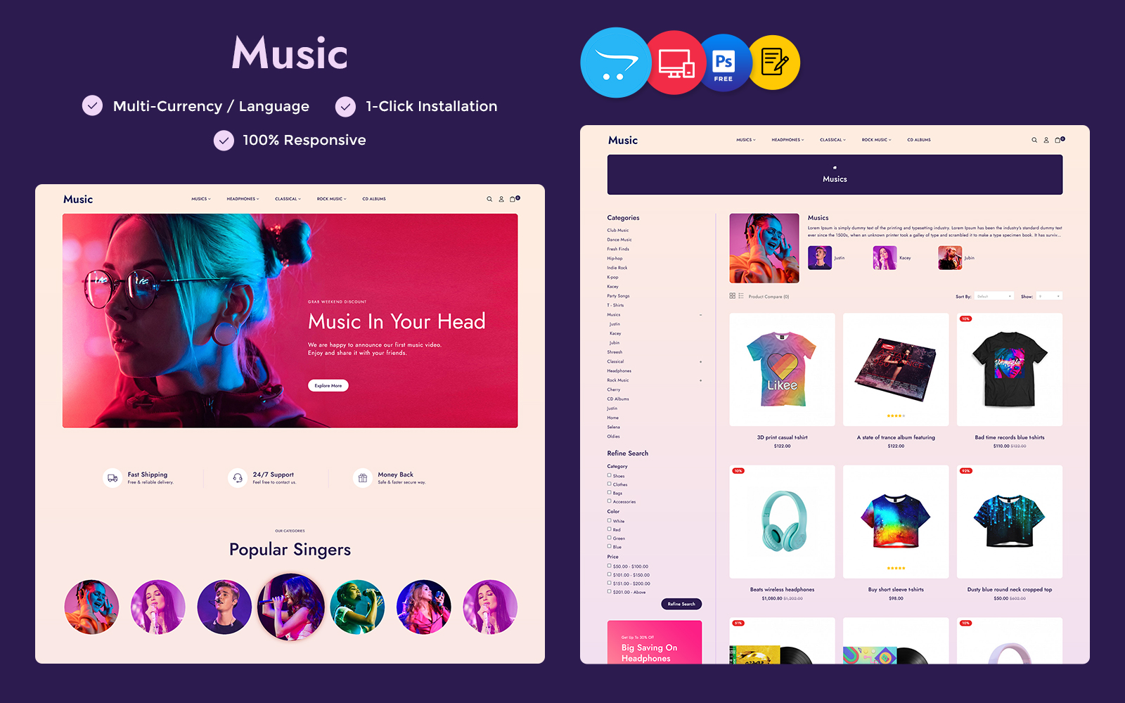 Music – Music Store, Musical Instruments and Accessories Multipurpose Opencart Theme OpenCart Template