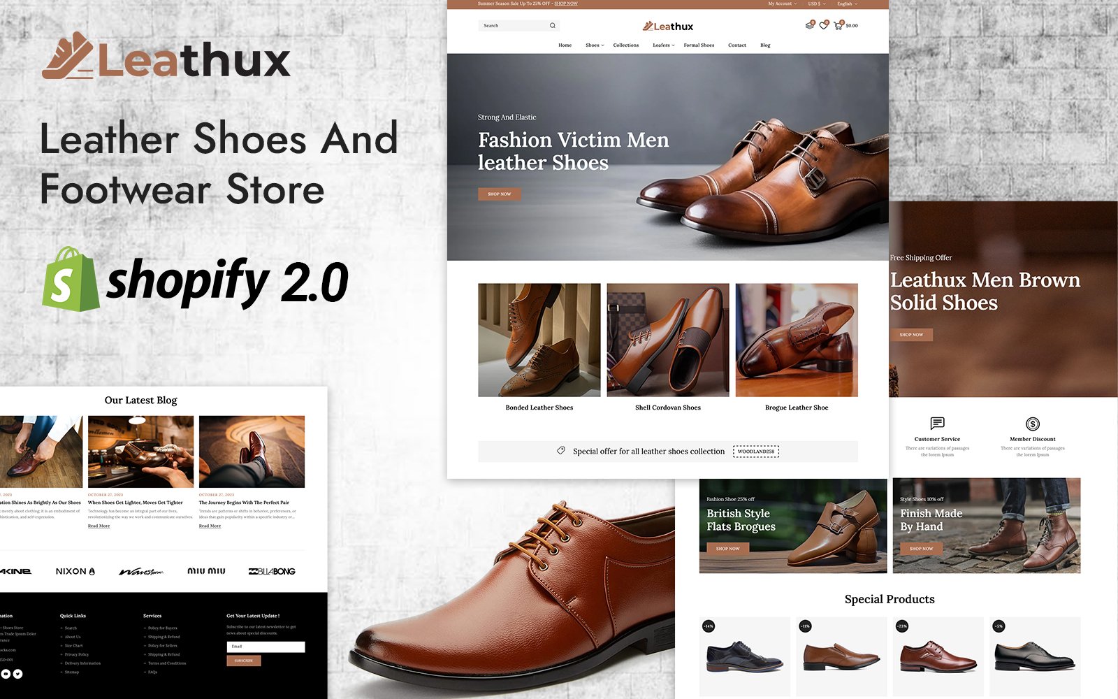 Leathux – Leather Shoes & Footwear Store Shopify 2.0 Responsive Theme Shopify Theme