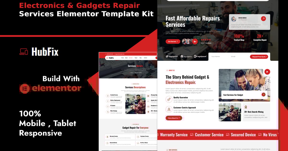 HubFix – Gadgets & Electronics Repair Services Elementor Template Kit