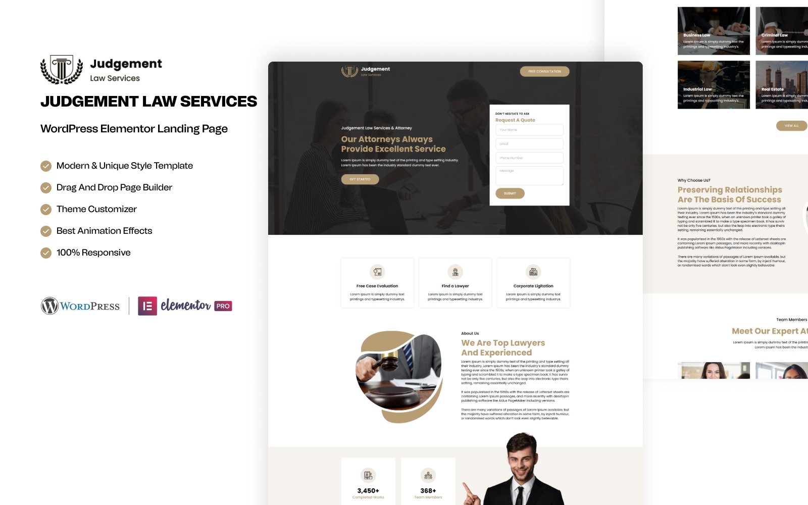 Judgement – WordPress Law Services Ready to Use Elementor Template Elementor Kit