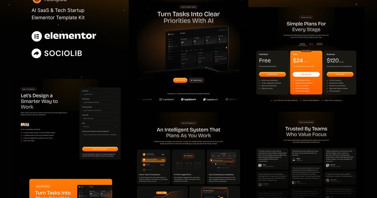 Taskpad – AI Saas & Tech Startup Elementor Template Kit