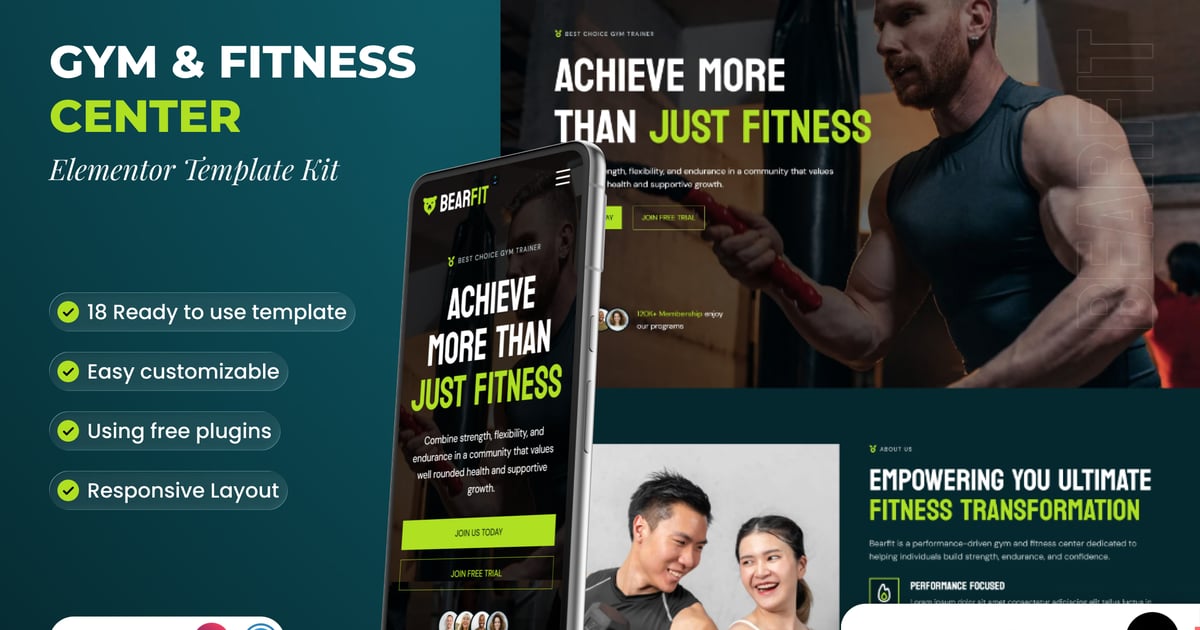 Bearfit – Gym & Fitness Center Elementor Template Kit