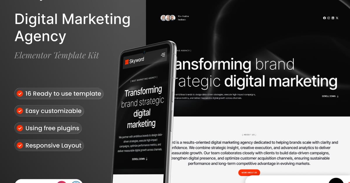 Skyword – Digital Marketing Agency Elementor Template Kit