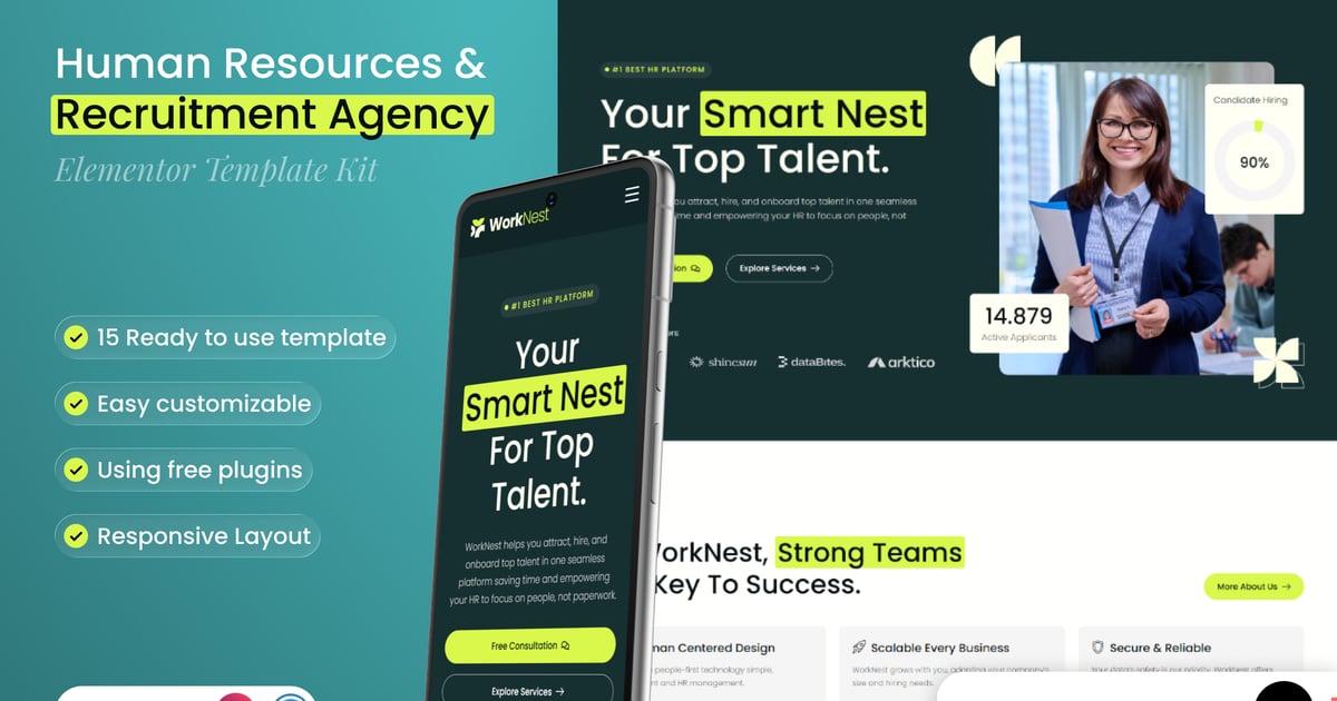 Worknest – Human Resources & Recruitment Agency Elementor Template Kit