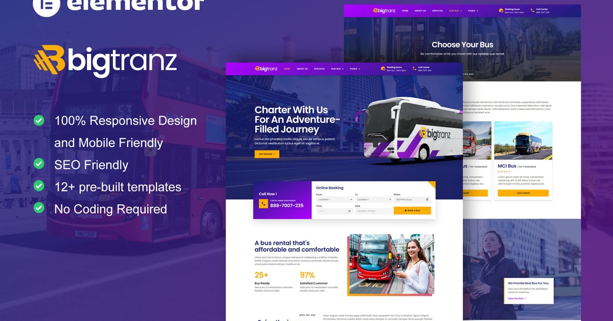 BigTranz – Bus Charter Service & Rental Elementor Template Kit
