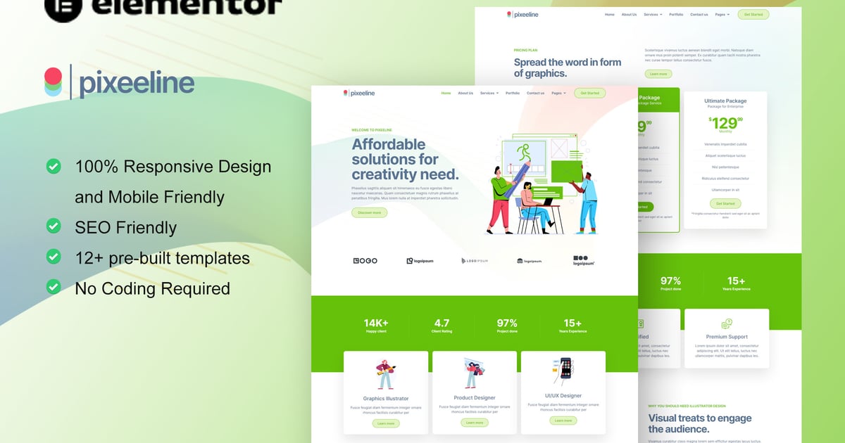 Pixeeline – Graphics Illustration Freelance & Creative Agency Elementor Template Kit