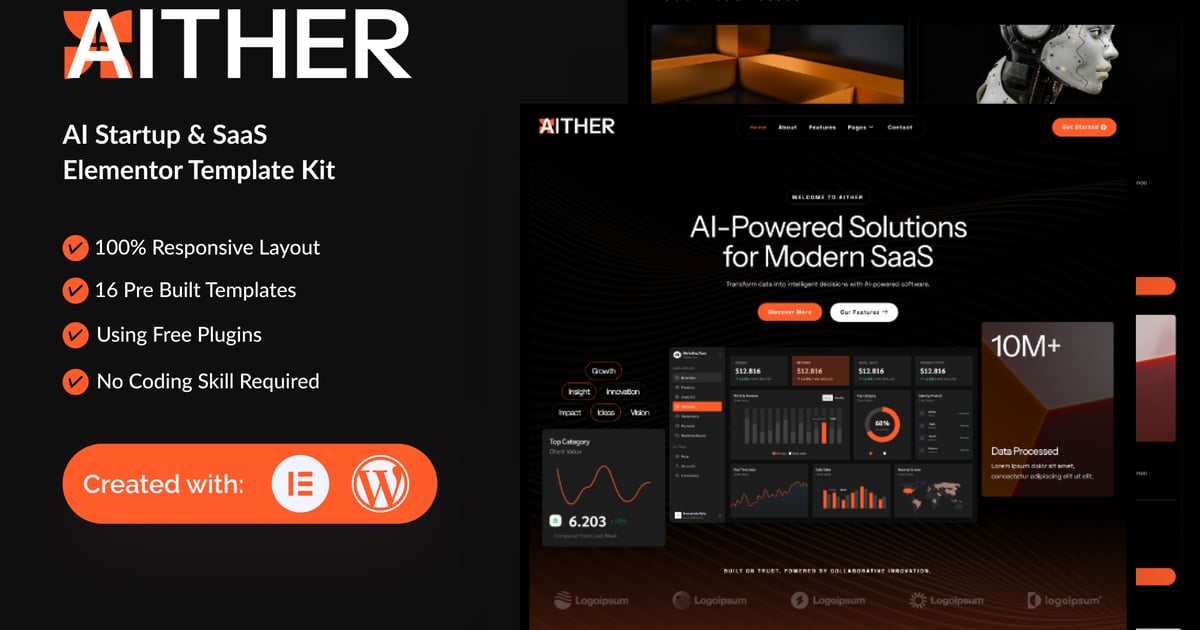 Aither – AI Startup & SaaS Elementor Template Kit