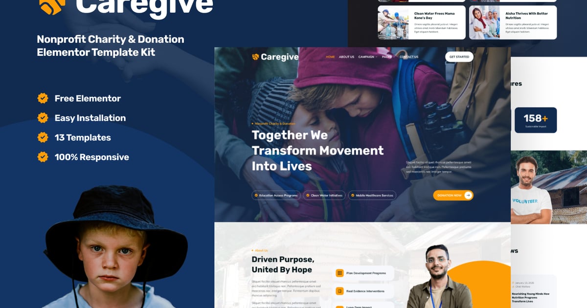Caregive – Nonprofit Charity & Donation Elementor Template Kit
