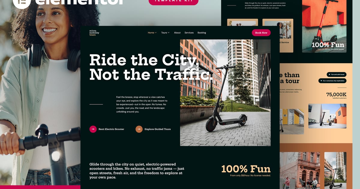 Micromobility Tours – Electric Scooter & Bike Rental Elementor Template Kit