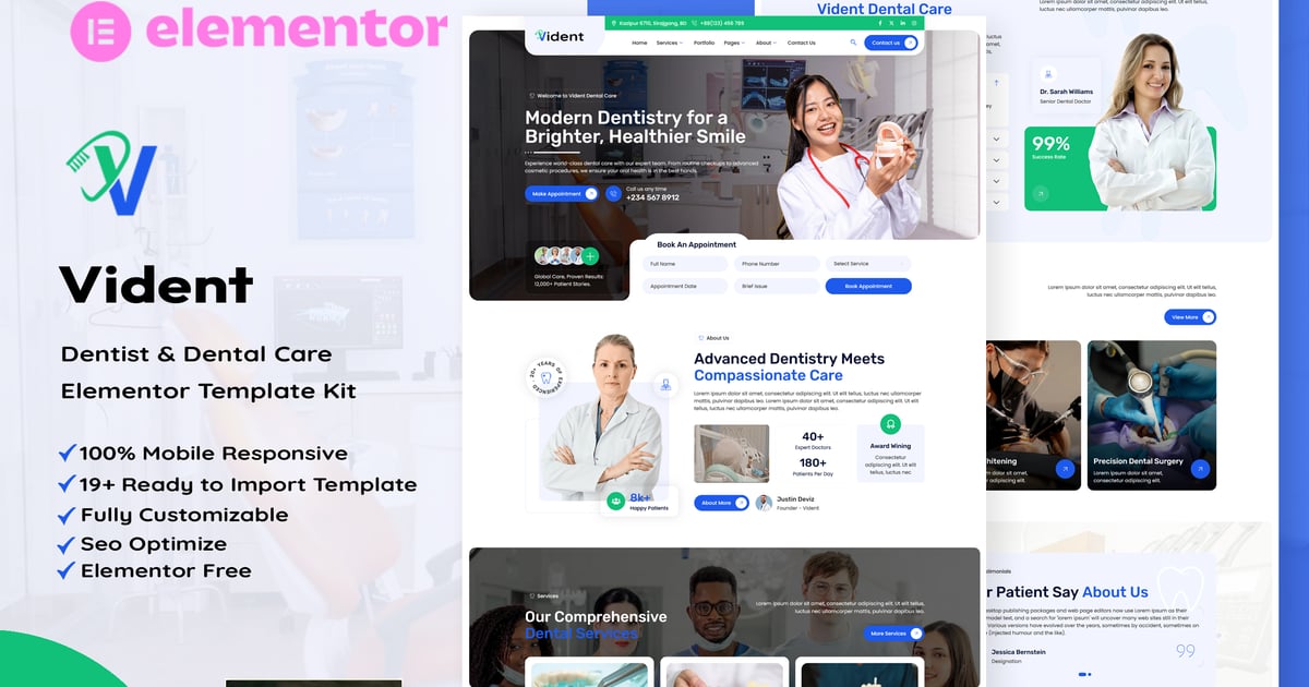Vident – Dentist & Dental Care Elementor Template Kit