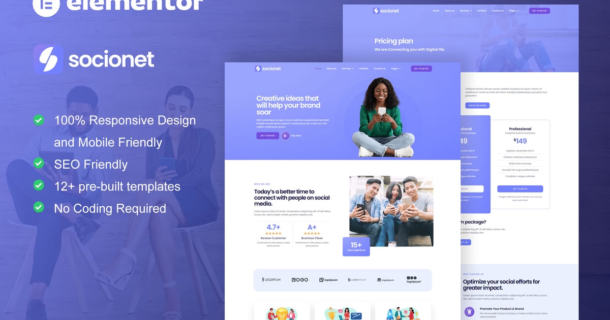 Socionet – Social Media Marketing Agency Elementor Template Kit
