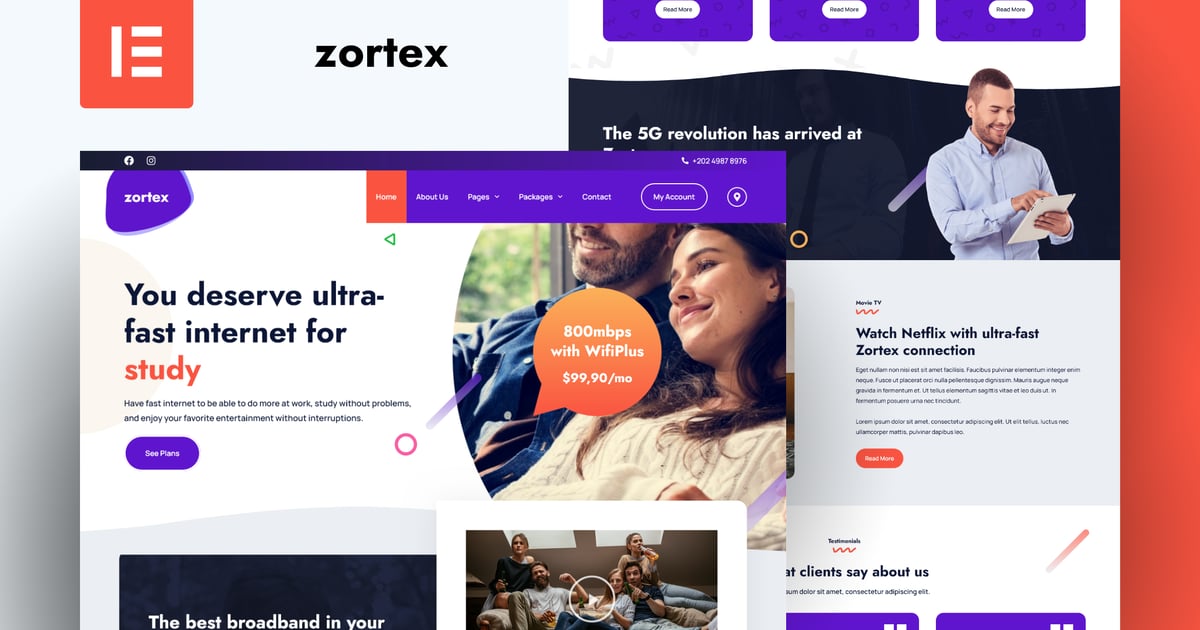 Zortex – Broadband & Internet Services Elementor Pro Template Kit