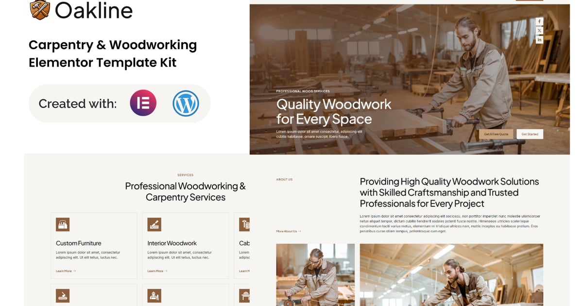 Oakline – Carpentry & Woodworking Elementor Template Kit