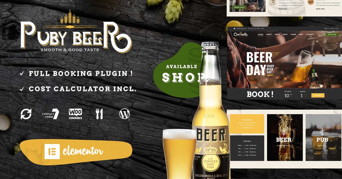 Puby has been designed for all pubs, brewery and beer activities, includes the awesome Elementor page builder. You can add different pages with all brewery informations and add your custom pages for receive reservations. Puby beer shop wordpress theme is perfect for all pubs like beer, brewery and restaurants.