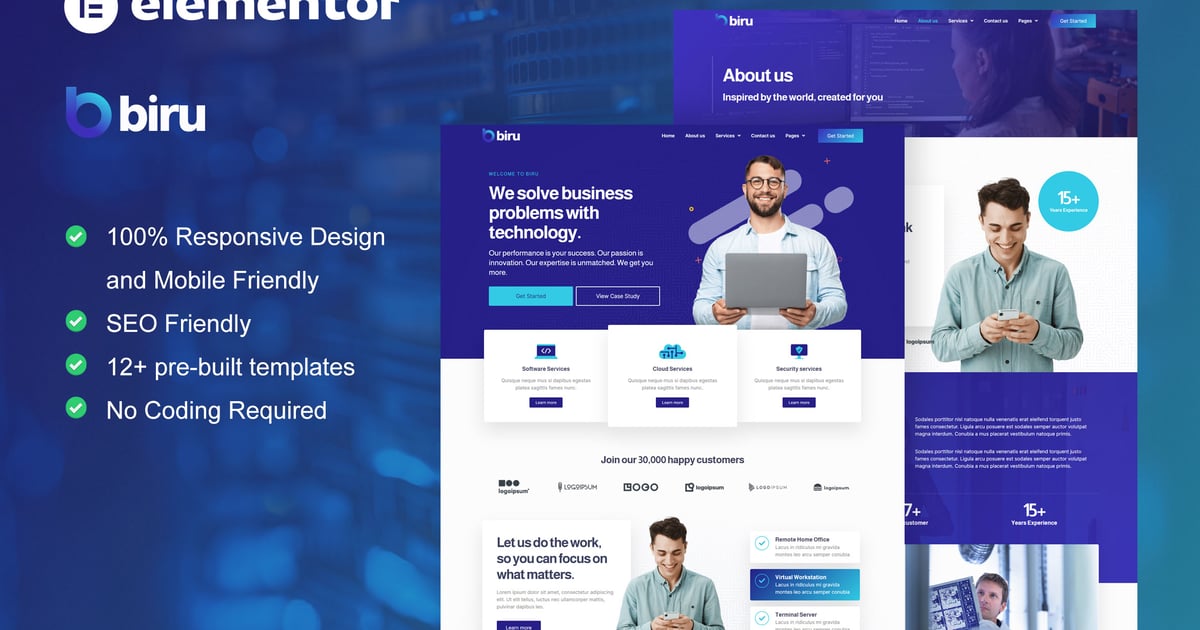 Biru – IT Services Elementor Pro Full Site Template Kit