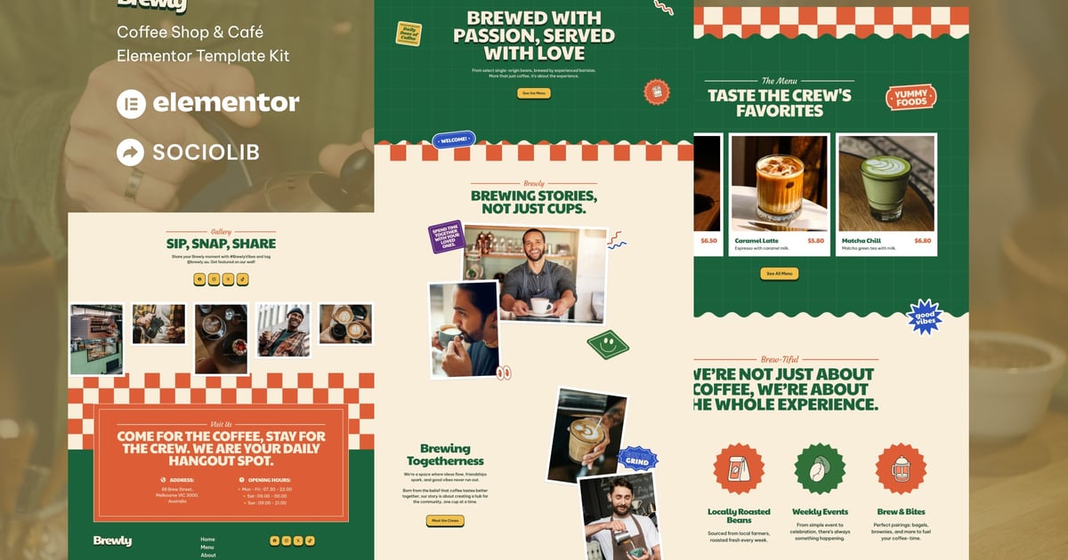 Brewly is an Elementor Template Kit for quickly and easily creating Coffee Shop & Café website using the Elementor Page Builder plugin for WordPress. Suitable for Coffee shop, cafe, barista, restaurant, coffee house, coffee maker, local business, small business, food truck, street food, roaster, etc. Style your WordPress website with this creative and modern web design style template kit to bring a modern feel to your blog.