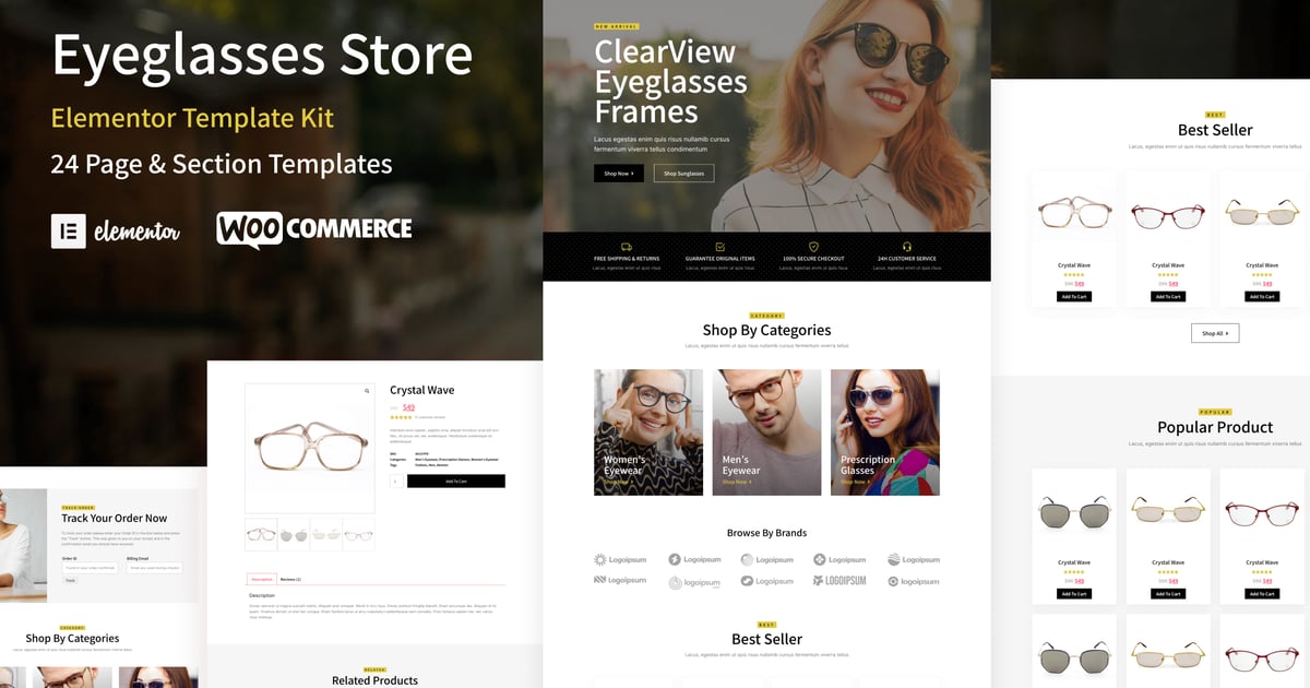 ClearView – Eyeglasses & Eyewear Store WooCommerce Elementor Template Kit