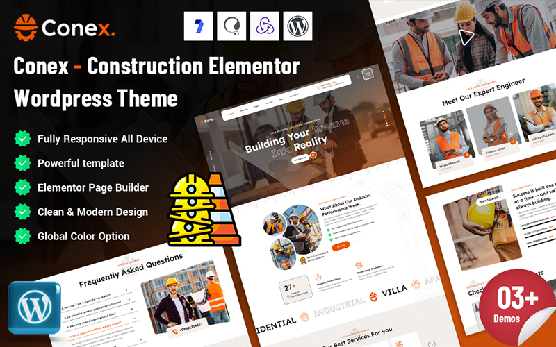 Conez is a versatile and modern Construction Elementor WordPress theme designed specifically for building and construction businesses. It offers a highly customizable, user-friendly interface with pre-designed templates and elements tailored to showcase services, projects, team members, and contact information effectively. Built with Elementor, it allows for easy drag-and-drop editing, enabling users to create professional, responsive websites without coding skills. Conez is ideal for contractors, architects, interior designers, and other construction-related professionals looking to establish a strong online presence quickly and efficiently.