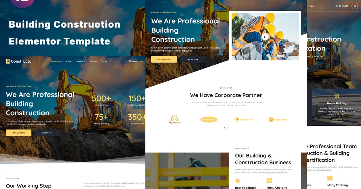 Constructa – Building & Construction Elementor Template Kit is a collection of layouts for the Elementor page builder WordPress plugin, designed for use with Elementor Free Version for a clean Design. It works with most themes and is optimized for use with the free Hello Elementor theme .