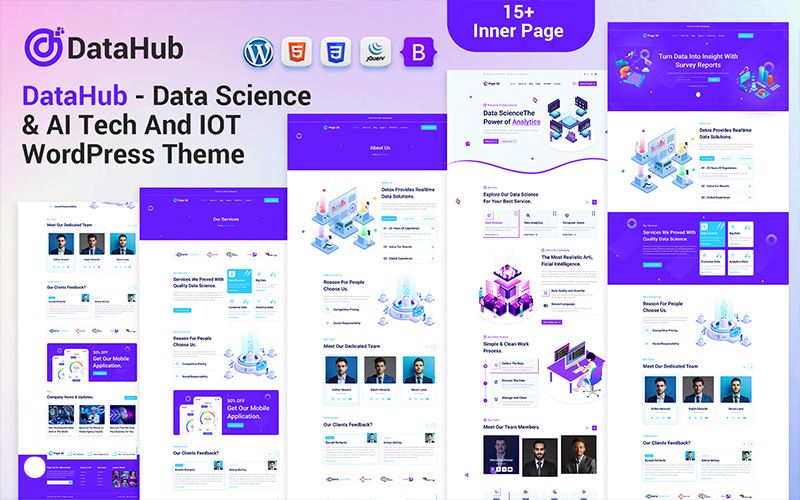 - Purpose-Built Design: Tailored layouts and elements to showcase Data Science, AI, and IoT projects, services, and content.