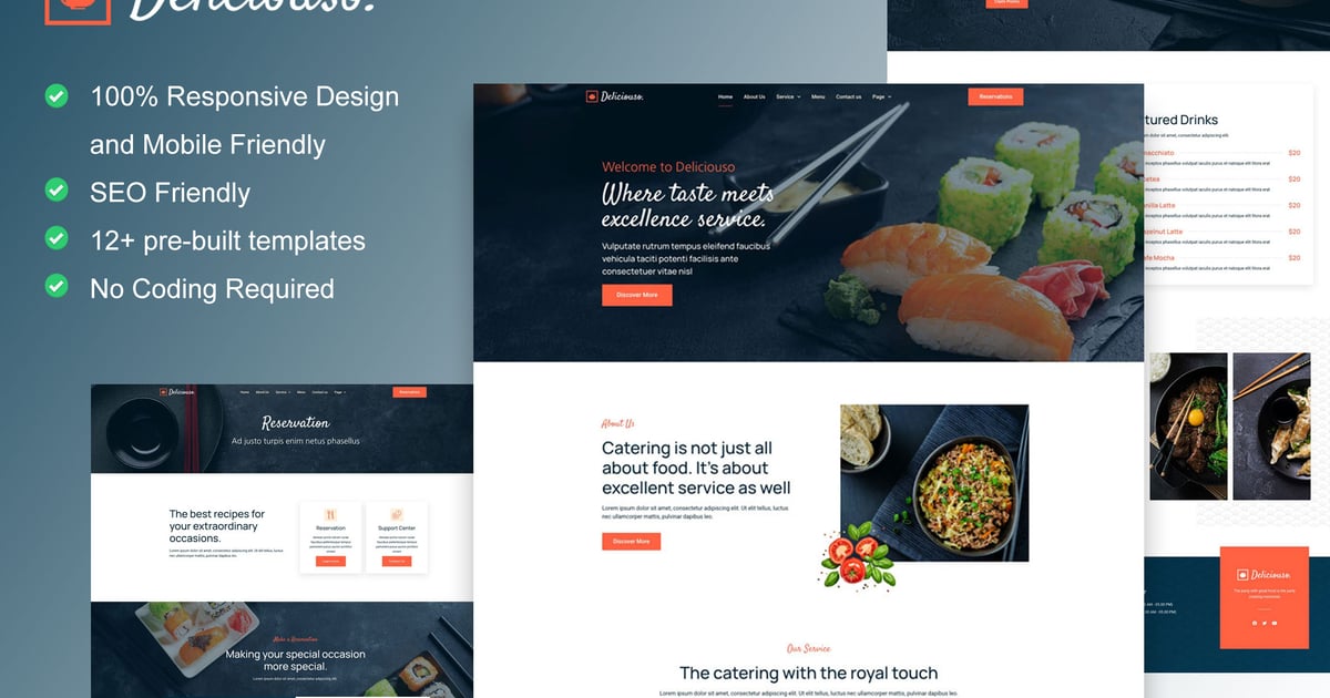 Deliciouso is Elementor Template Kit for catering & restaurant website. This template has modern layout with simple, professional and clean style. Suitable for any business related to food. You can easily build any business and service related to food such as catering website, delivery food, restaurant website, online food website, etc. Just drag and drop, no coding required.