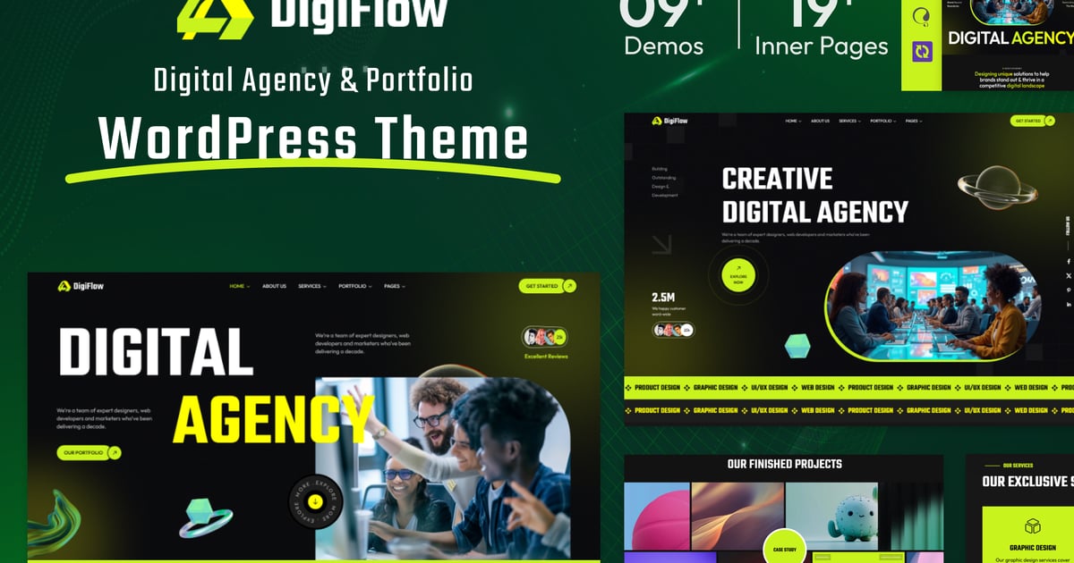 DigiFlow is a creative Digital Agency & Portfolio WordPress Theme designed for creative professionals, digital agencies, freelancers, and portfolio websites. Built with the powerful Elementor page builder, DigiFlow empowers users to craft stunning, fully responsive websites with ease — no coding required.