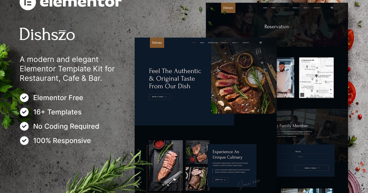 Dishszo is an elegant Elementor Template Kit to create a pro-level and