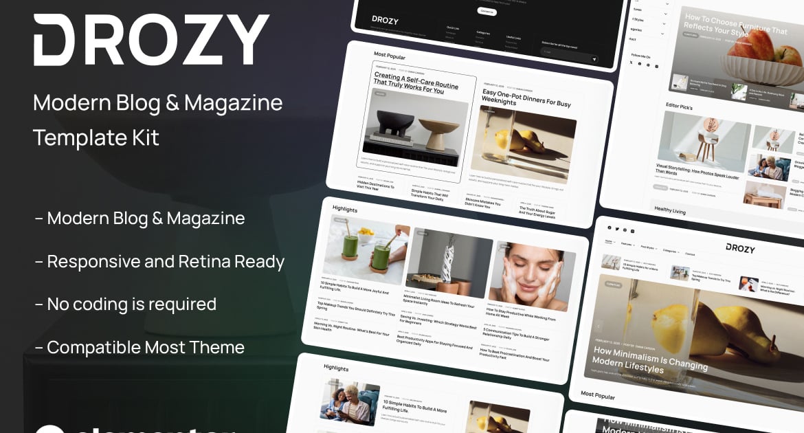Drozy – Modern Blog & Magazine Elementor Pro Template Kit