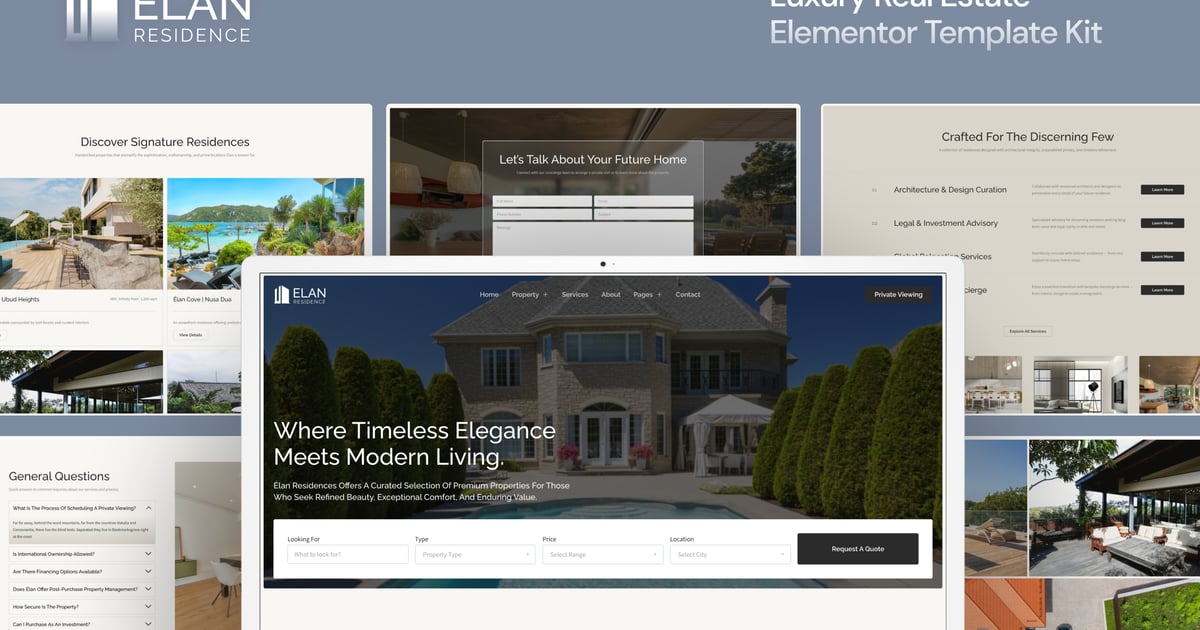 Elan is a sophisticated Elementor template kit crafted for luxury real estate agencies, property developers, and consultants. With immersive layouts designed to build trust and highlight premium properties, Elan helps present listings with elegance and authority.