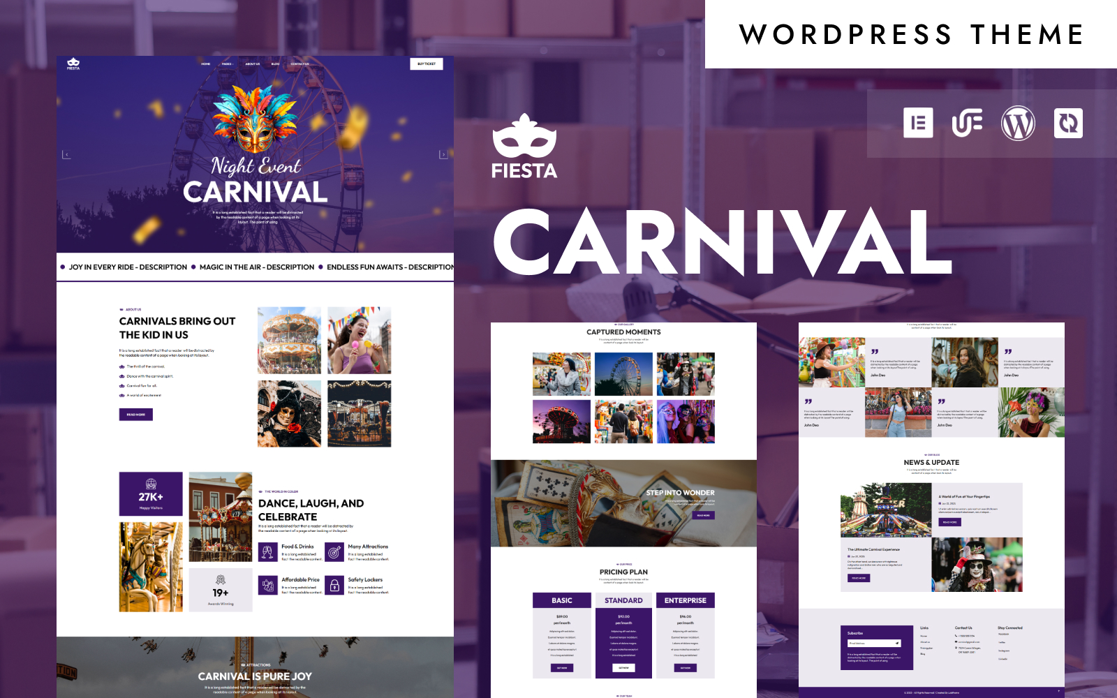 Powered by Elementor and the WordPress Customizer, you can modify layouts, fonts, colors, and animations to suit the unique theme of your carnival.