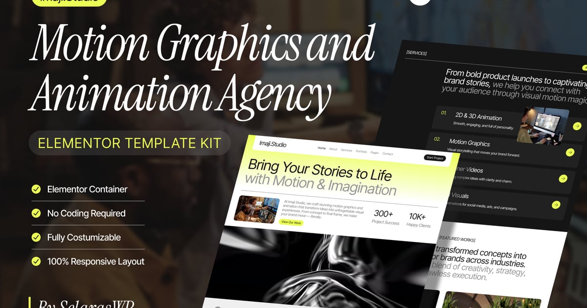 Animate your online presence with ImajiStudio, a premium Elementor Template Kit crafted for the vibrant world of motion graphics and animation. Whether you’re a burgeoning animation studio, a creative agency, or a freelance motion designer, ImajiStudio provides the perfect canvas to showcase your work in a captivating and professional manner.