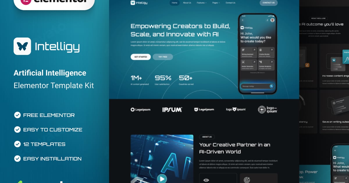 Intelligy is the ultimate Elementor Template Kit for Artificial Intelligence and tech-related businesses. This comprehensive kit is designed for AI startups, machine learning companies, and data science professionals who want to build a modern online presence quickly. With a sleek, futuristic design and essential pages like Home, Our Features, and Pricing, you can showcase your technology and attract more users or clients. This template bundle supports a responsive mobile view.