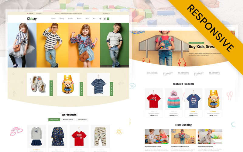 Kidpay Kids Store Opencart Responsive template is designed for kids, toys, flowers, fashion, gift, stationary, accessories, books, pen, shoes, bag, food, chocolates, cake, minimal and multi purpose stores. This Theme is looking good with colors combination and it looks very nice with its clean and professional. Template is 100% responsive with all devices and compatible with all browsers.