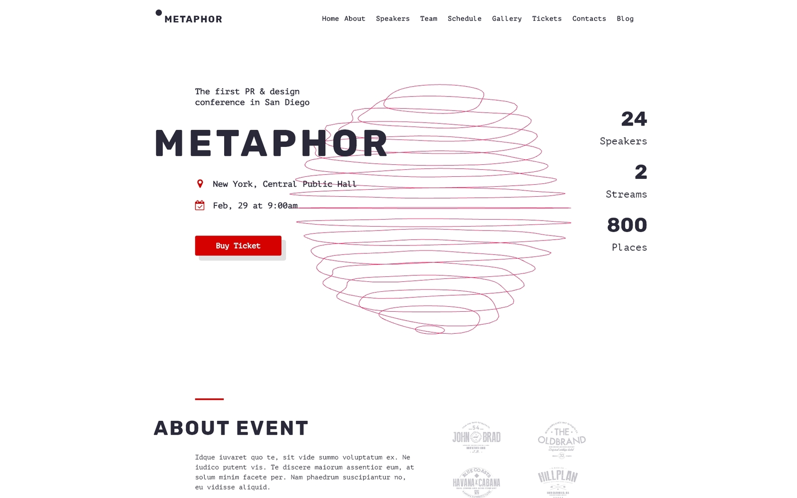 Metaphor Event Planner WordPress Theme is a professional responsive WP theme with spectacular animation and beautiful bright design. By using it, you can easily start providing your event services with a fully functional website. The theme contains all the key features that you may need to create a website. Metaphor is an excellent stylish WordPress theme. Free premium quality images are also included. This will help you save money on photography for your new website. Although, of course, you’ll have to spend some time tuning your site to your specific needs. But in the end, you’ll create a premium website using minimal time and money.