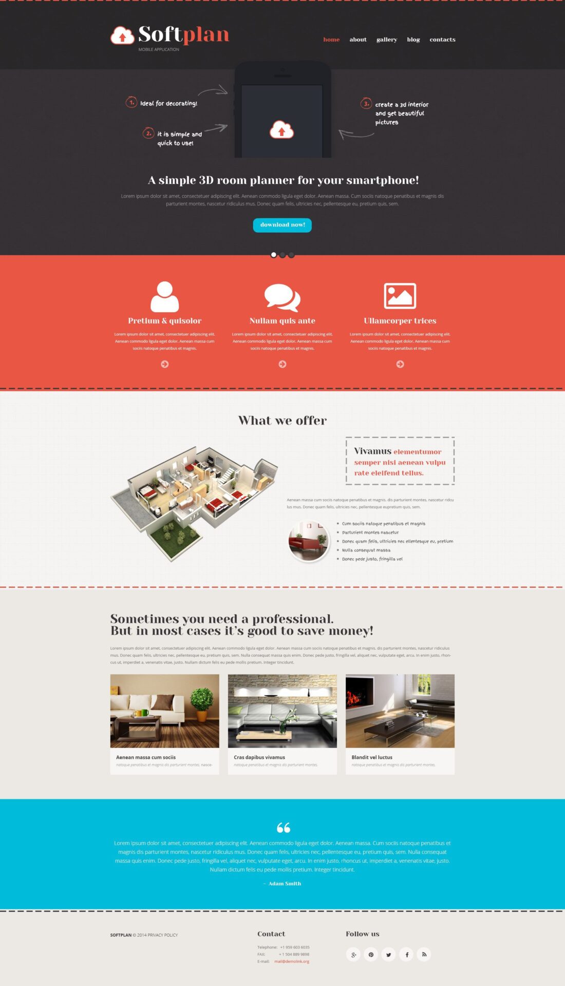 Everyone who likes flat web design and wants to add stylish, elegant look to their websites will like this theme. With special emphasis put on typography and services provided, it can be a great starting point for developing a mobile apps website. On reaching it, people will be introduced to the functional side of the promoted product, whereas the vibrant blue call to action button placed in the center of the page welcomes users to make a deal. Scrolling down the page, one can gain a deeper understanding of what you offer. In a word, with the help of the given design you can introduce the audience to your business quick and easy.