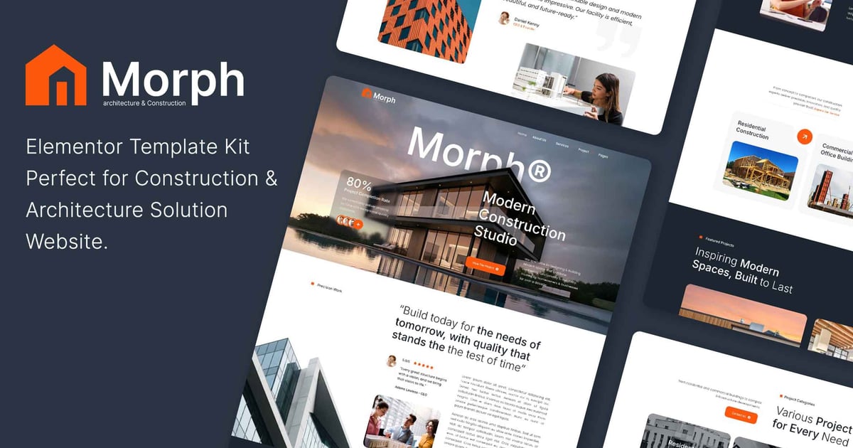 Morph is a clean, modern Elementor Template Kit designed specifically for construction studios, architecture firms, and building contractors. It comes with 15+ pre-built page templates and blocks for construction services, residential and commercial projects, company profiles, portfolios, pricing, blogs, and more. Fully responsive, easy to customize, and no coding required.