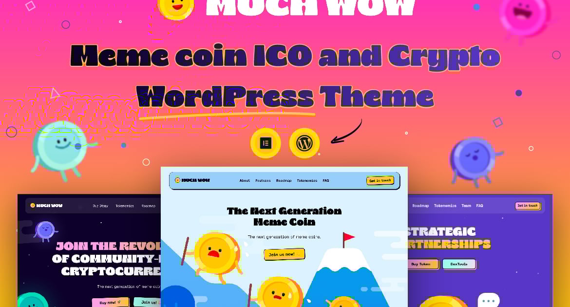 MuchWow is a modern, playful-yet-professional WordPress theme built for memecoins, crypto projects, NFT drops, and token presales. Powered by Elementor, it lets you drag-and-drop your entire landing without code—perfect for fast launches, A/B tests, and rapid marketing.
