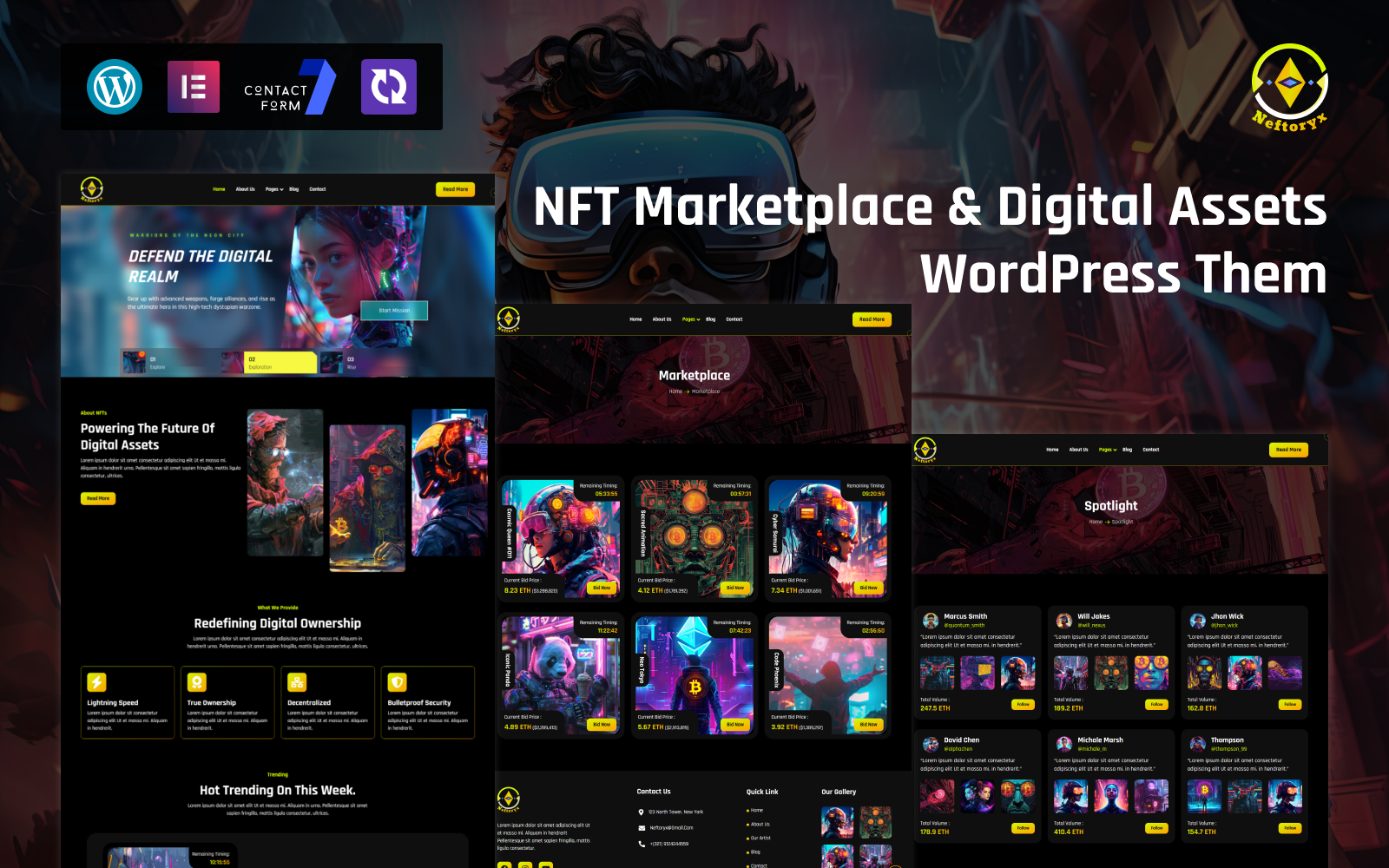 Neftoryx is a futuristic and powerful WordPress theme built for the next generation of digital creators, crypto enthusiasts, and NFT collectors. Designed with a sleek cyberpunk aesthetic, Neftoryx is the perfect choice for building NFT marketplaces, Web3 startups, blockchain platforms, and digital asset trading websites.