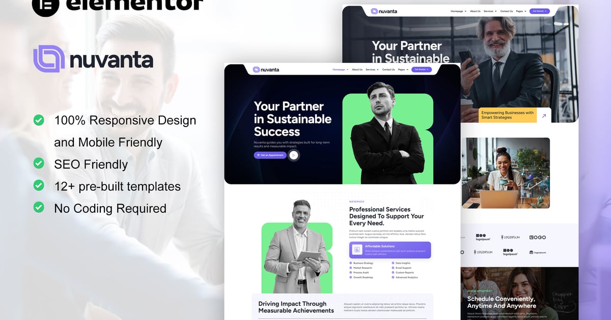 Nuvanta is an Elementor Pro Template Kit for business coach and consulting website. This template kit will help you to create any website related to business consultant website such business coach, speakers website, business consulting, mentors, trainers, consultant, online course, therapists, and business training. It has 12+ pre-built templates with clean design and modern style.