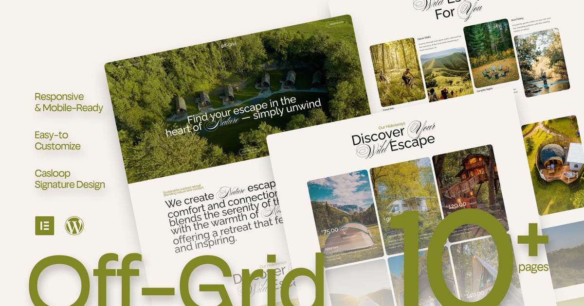 Off-Grid – Modern Natural Glamping Elementor Template Kit