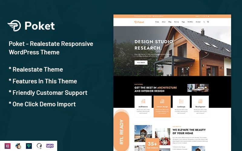 Poket is one of the high-quality responsive real estate WordPress themes it real estate theme for construction and home viewer companies. in this theme, the design is very nice, clean, and modern technology. billed its best popular page builder Elementor. It is an ordinary and best then in this market for the real estate category. our theme has 93+ customer elements and theme option and element control options in our theme. for the feature, user can easily make their site very easily. It supports construction, realestate, business, it, corporate and other websites.