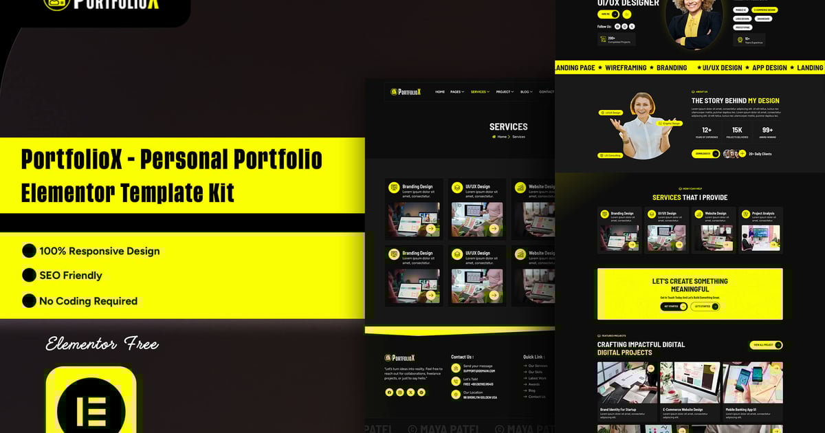PortfolioX – Personal Portfolio & Resume Elementor Template Kit designed specifically for developers, designers, programmers, freelancers, artists, coders, creators or any other professions Websites. PortfolioX is a clean and professional design with a 100% responsive layout, retina-ready. Save your time to make Personal Portfolio & Resume website with this elementor template kit. With Elementor Page Builder, you can easily edit or customize it, no coding required, just drag and drop.
